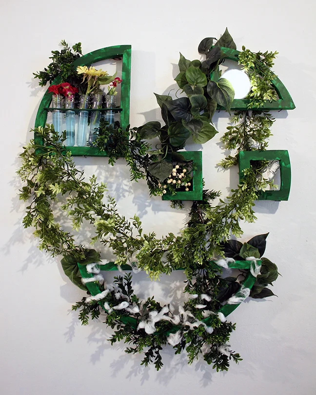 Synthesis, explores the current state of our environment as a result of many years of human intervention in the natural balance of nature. To demonstrate this idea, I took an important process to life on Earth, Photosynthesis, and placed it in a human-made system. Each of the components of this process are represented through man-made products to demonstrate human intrusion in the environment. Photosynthesis has helped in the production of food and materials that help fight global epidemics such as malnutrition to emitting much of the oxygen we need to breathe.